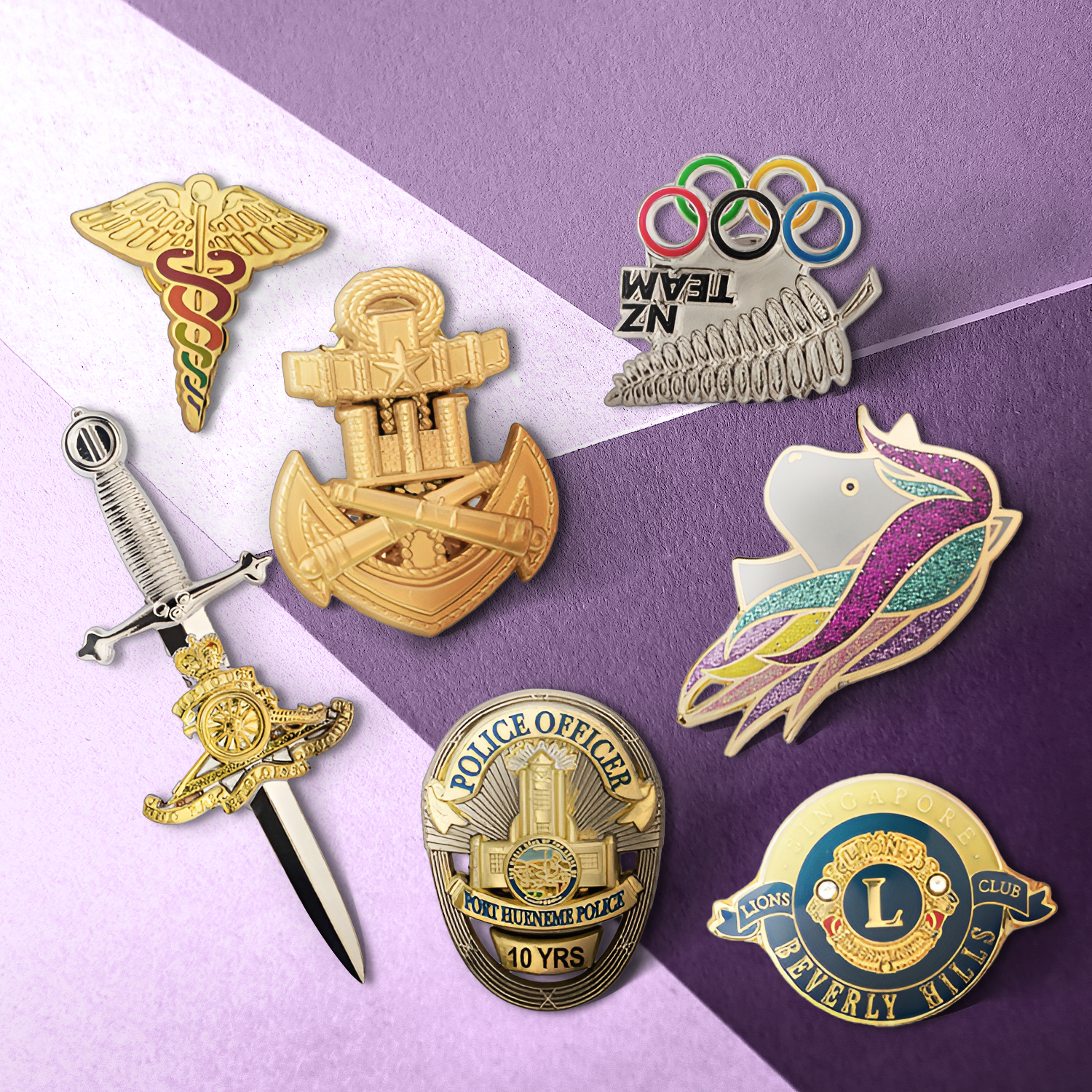 Explore the variety of shapes, sizes, and finishes we offer to create a pin that’s uniquely yours. Whether you’re envisioning something classic or completely out of the box, we make it possible.